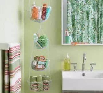 沒有地方放毛巾,其他物品,做一個這樣的吊籃會很能盛放東西,根據(jù)需要可以多摞幾個。